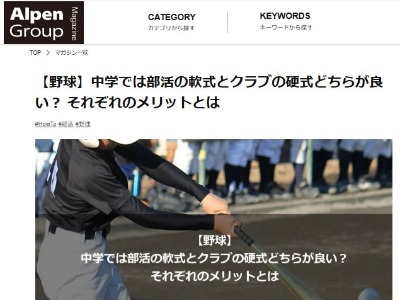 Alpen Groupのマガジンに中学では部活の軟式とクラブの硬式どちらが良い? それぞ...
